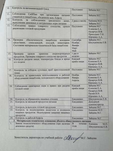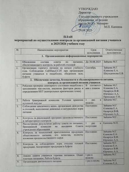 Контроль за организацией питания